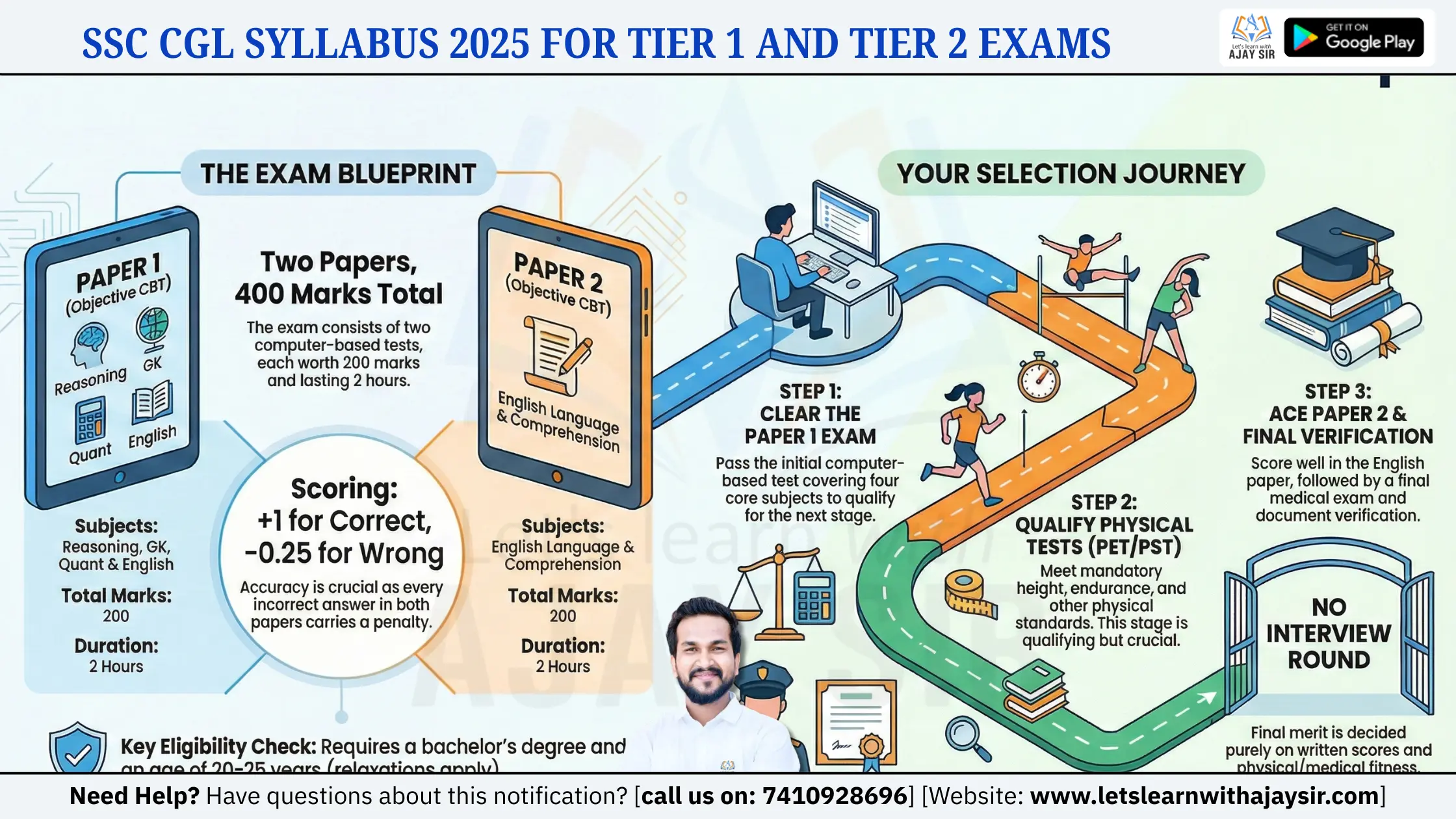 The first tier is MCQ-based with four sections of 25 questions each — 100 questions, 200 marks, and just 60 minutes. Remember, there is a 0.50 mark penalty for each wrong answer, so strategy matters.